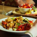 Fried chicken, peppers, onions, scallions, cashews, sweet & hot sauce